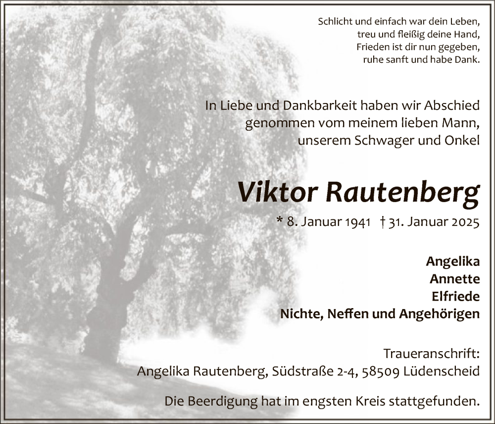 Hier finden Sie alle Traueranzeigen aus der Zeitung, die bisher für Viktor Rautenberg erschienen sind. Weitere Traueranzeigen, die in der Zeitung erscheinen, werden hier ebenfalls aufgelistet