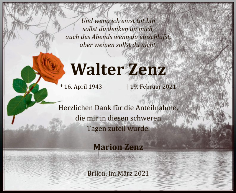Hier finden Sie alle Traueranzeigen aus der Zeitung, die bisher für Walter Zenz erschienen sind. Weitere Traueranzeigen, die in der Zeitung erscheinen, werden hier ebenfalls aufgelistet