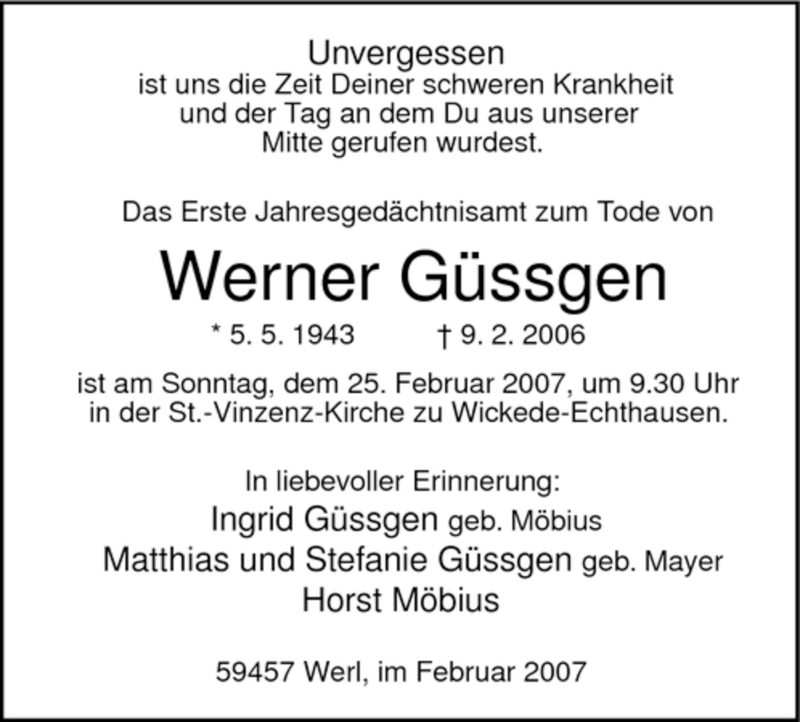 Hier finden Sie alle Traueranzeigen aus der Zeitung, die bisher für Werner Güssgen erschienen sind. Weitere Traueranzeigen, die in der Zeitung erscheinen, werden hier ebenfalls aufgelistet