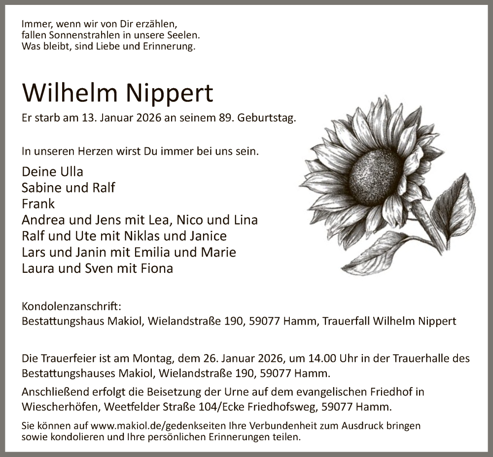 Hier finden Sie alle Traueranzeigen aus der Zeitung, die bisher für Wilhelm Nippert erschienen sind. Weitere Traueranzeigen, die in der Zeitung erscheinen, werden hier ebenfalls aufgelistet