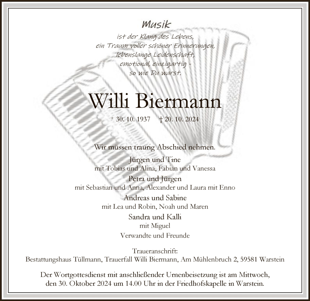 Hier finden Sie alle Traueranzeigen aus der Zeitung, die bisher für Willi Biermann erschienen sind. Weitere Traueranzeigen, die in der Zeitung erscheinen, werden hier ebenfalls aufgelistet