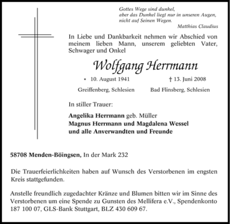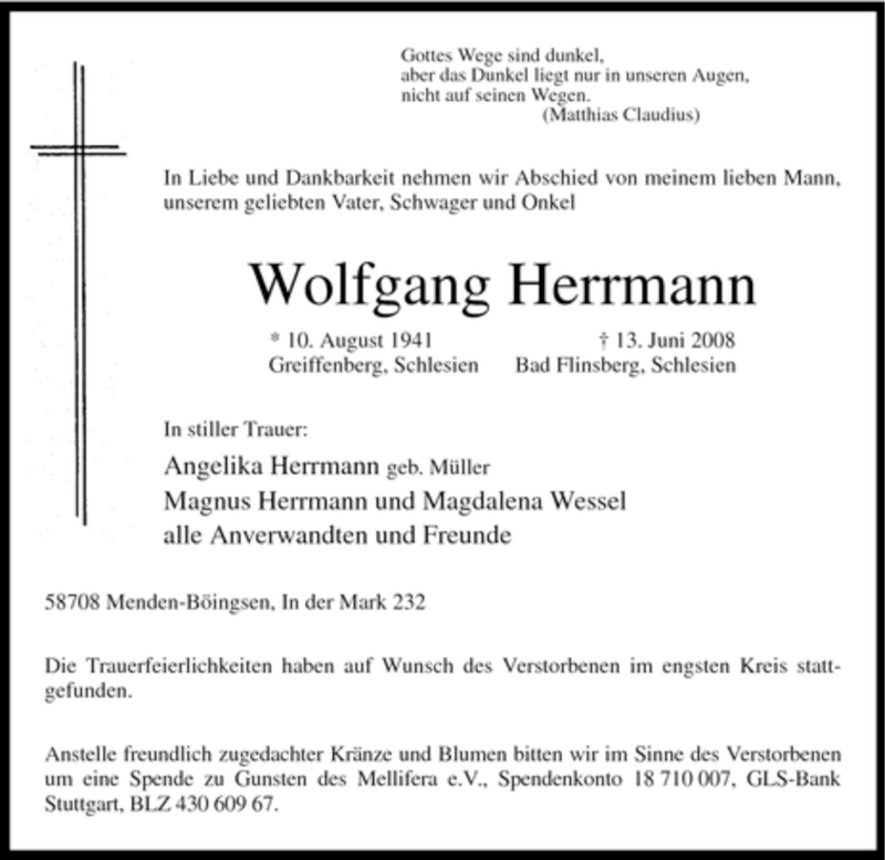 Hier finden Sie alle Traueranzeigen aus der Zeitung, die bisher für Wolfgang Herrmann erschienen sind. Weitere Traueranzeigen, die in der Zeitung erscheinen, werden hier ebenfalls aufgelistet