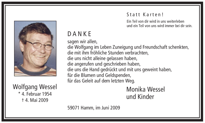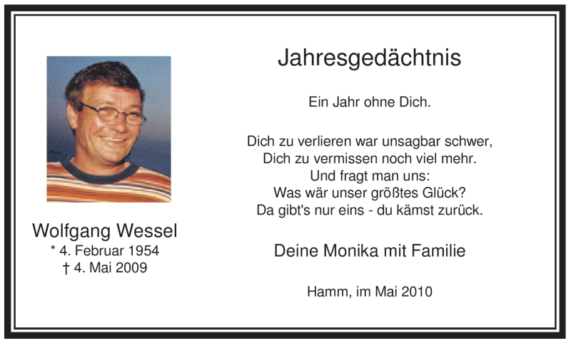 Hier finden Sie alle Traueranzeigen aus der Zeitung, die bisher für Wolfgang Wessel erschienen sind. Weitere Traueranzeigen, die in der Zeitung erscheinen, werden hier ebenfalls aufgelistet